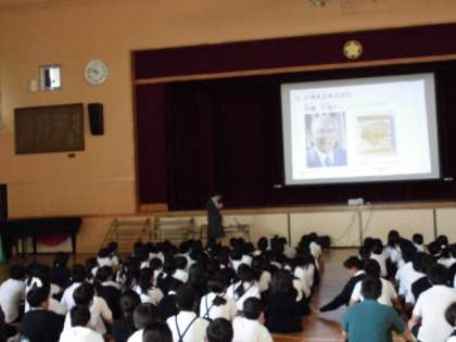 5・6年生は、大阪企業家ミュージアムの方を講師にお招きして、出前授業を行いました。大阪に関わりのある企業家の『企業家精神』を学びました。