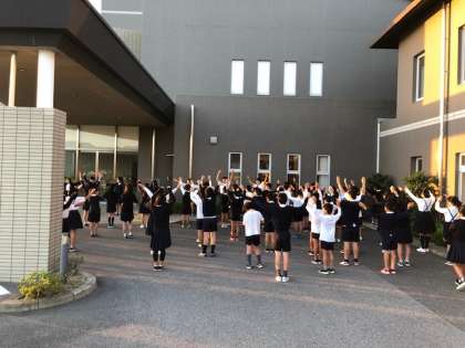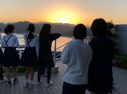 おはようございます。今朝は、みんな揃って、朝の集いを行なっています。きれいな日の出を見ることができました。