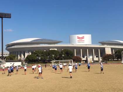 6年生は、長居陸上競技場で『スポーツ交歓会』に参加しています。午前中は、ドッジボール、サッカーをしています。
