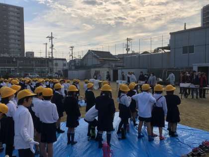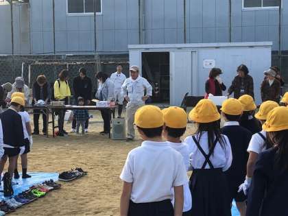 2年生は、加美グランドで『芋パーティー』を行いました。まずは、作り方の説明を聞きました。