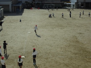 3年生の体育『ベースボール型ゲーム』の様子です。