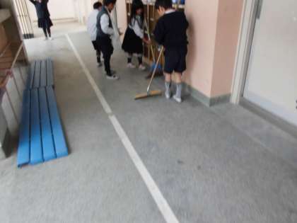 毎日、1時20分から35分は掃除の時間です。いつも、クラスごとに決まった場所を掃除をしています。