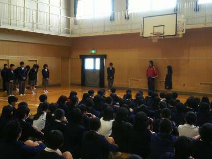 6年生が加美中学校へ部活体験に行きました。加美中学校では生徒の皆さんが暖かく迎えてくださり、加美中学校の部活動の紹介を聞き、各部活の活動を体験しました。