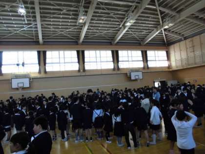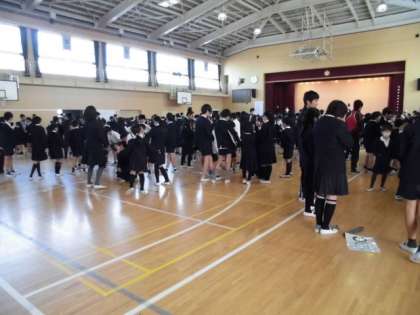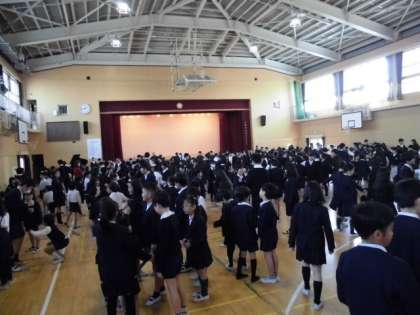 今日の5時間目に、『卒業を祝う会』が行われました。入場後に、縦割りグループでゲームをしました。