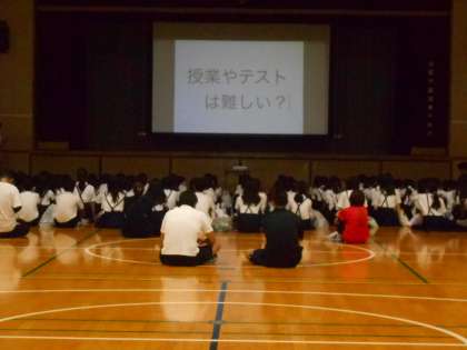 6年生が加美中に行き、体験授業をうけたり、学校説明を受けたりしました。