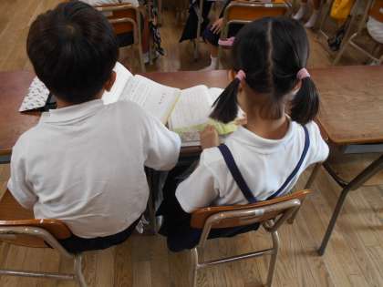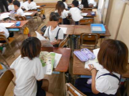 場面分けをしています。それぞれが場面分けをした後、グループで、どうしてそんな風に分けたのかを話し合っています。