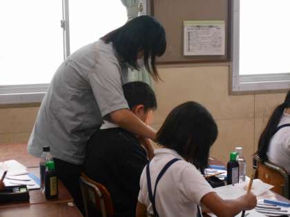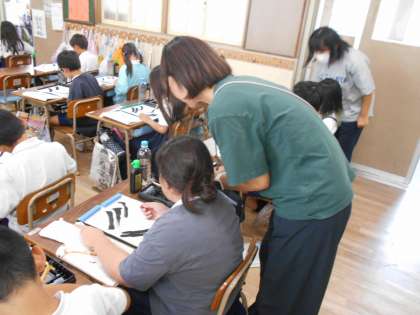 はらいの書き方を練習しています。何回も書くうちにきれいなはらいができるようになってきました。
