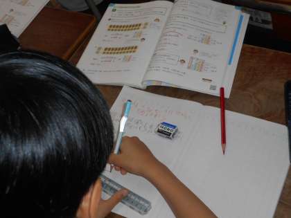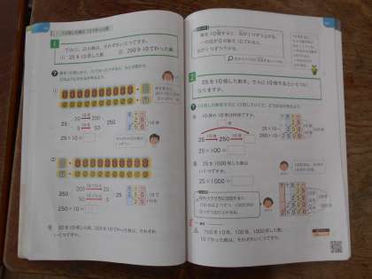 10倍すると位が1つ上がるということをしっかりと確認しています。