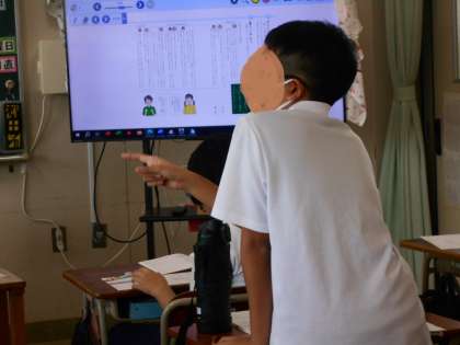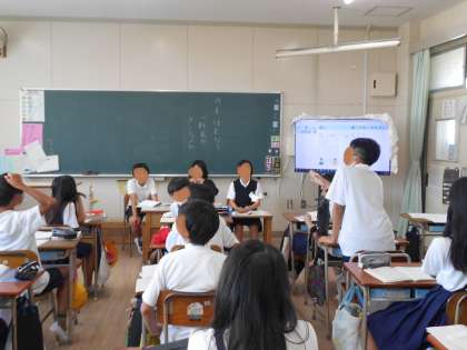 というテーマでディベートをしています。自分の意見の根拠をわかりやすくみんなに説明していました。