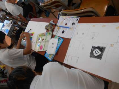 絵の具を使って作品作りをすすめています。