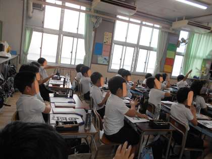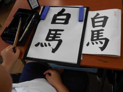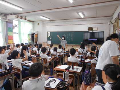 みんなで書き方を確かめて、一筆一筆ていねいに書いています。