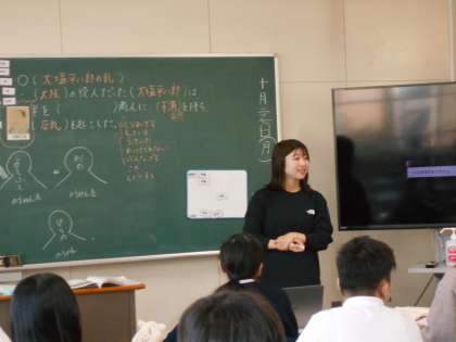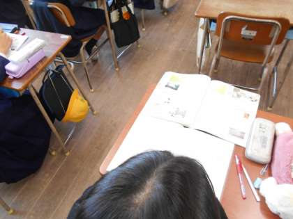 百姓一揆について具体的な説明を聞いています。先生がクラスの子どもたちの名前を使って例を挙げて説明しているので、みんな興味津々で聞いていました。
