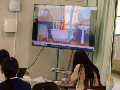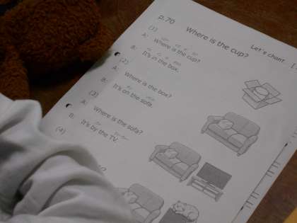 前置詞の学習をしています。動画を見ながらわかりやすく説明を聞いていました。