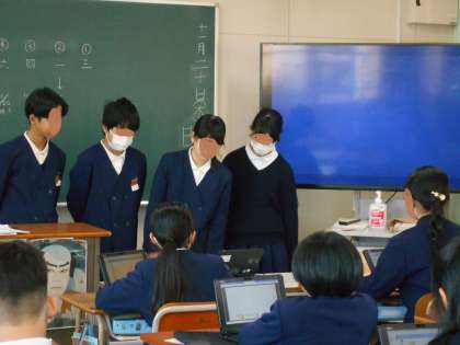 子どもたちが発表の題材を考え、パソコンのパワーポイントを活用して班ごとに発表しています。各班、工夫が凝らされていて、見入ってしまう学習でした。