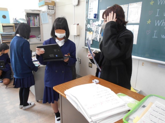 今日は英語の先生に一人ずつスピーチを聞いてもらっています。