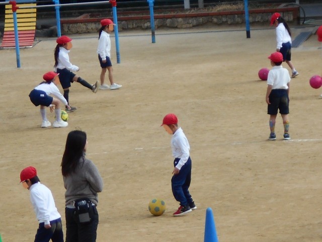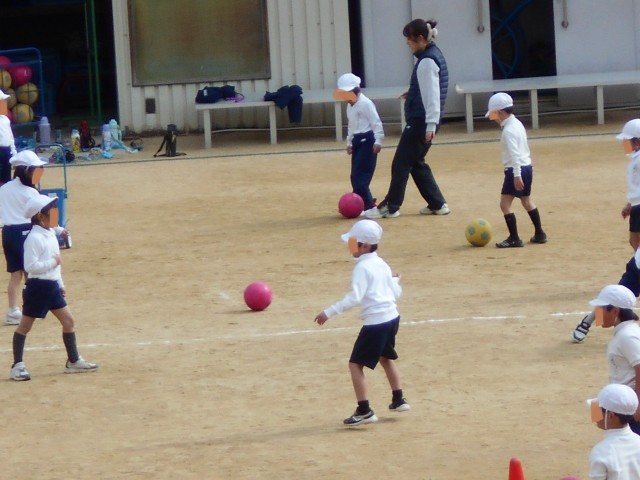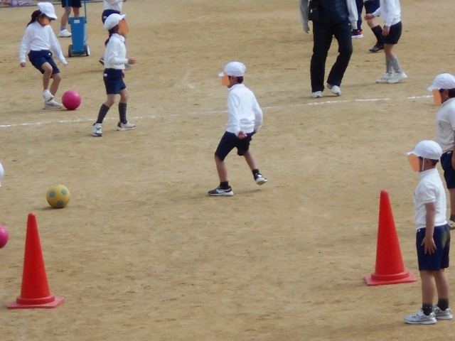 今日も本当に寒かったです。が、1年生の子どもたちは元気いっぱいボールけり運動に夢中でした。