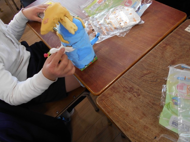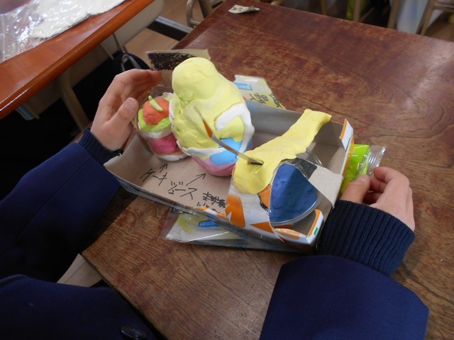 紙粘土の作品が徐々に出来上がってきました。個性あふれる力作ばかりです。