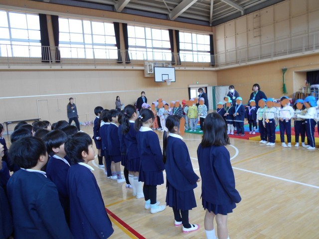 1年生が近隣の保育園・幼稚園の子どもたちと交流をしました。クイズや音楽、手作りのメダルも渡して楽しい時間を過ごしました。