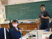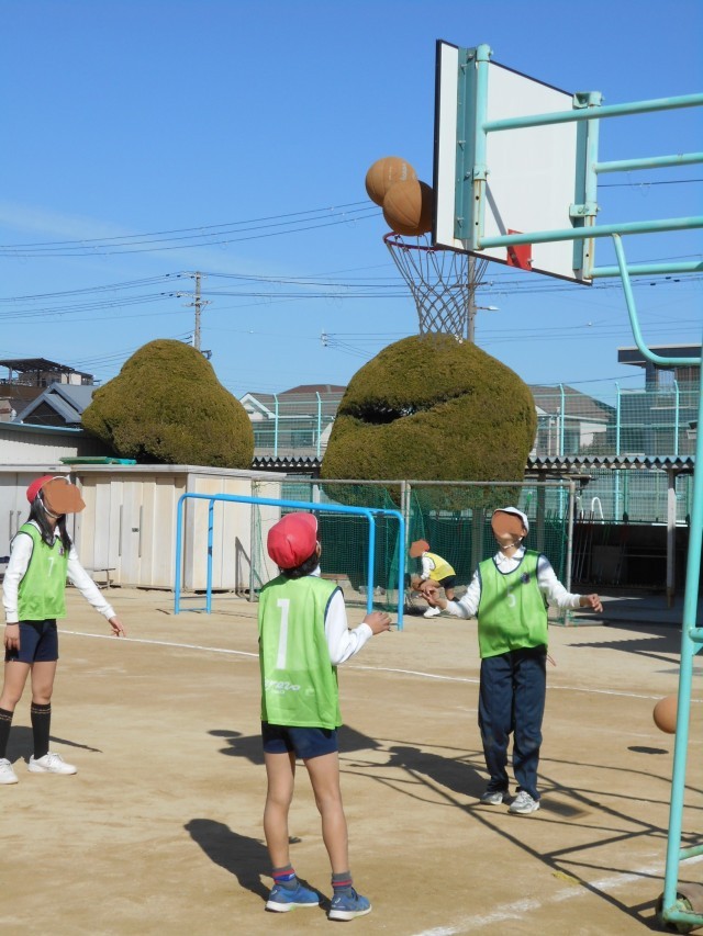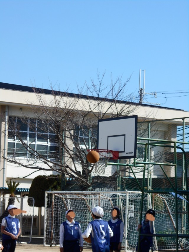バスケットボールをしています。たくさんシュートが決まると歓声が上がっていました。