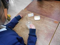 「水の温度ともののとける量」ミョウバンを溶かして、実験をしています。