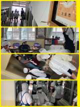 給食室に入る前に、打ち合わせ! 「給食おいしかったです」 「3学期もおいしい給...