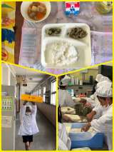 加美小学校には事業担当主事の先生(写真・真ん中右)がいます。 給食の業務を中心に...