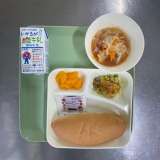 9月27日(金)の給食は ○ カレーマカロニグラタン ○トマトスープ ○みかん(...