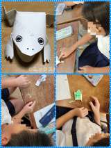「ピョンピョンガエル」を作っていました。教室のあちらこちらで、カエルが跳んでい...