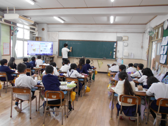 4年生の理科の授業の様子です。春の生き物について学習しています。