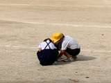 落ち葉や木や足を使って。造形を作り写真におさめていきます。