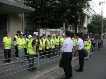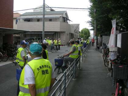 毎週水曜日15:30〜、児童の下校時の安全を確保するため、地域・保護者・区役所の皆さんによる校区巡視を行っていただいています。