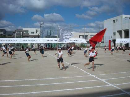 迫力満点。全校児童の皆さんもしっかりと協力することができていました。