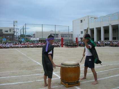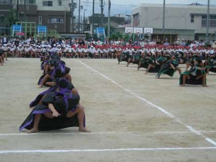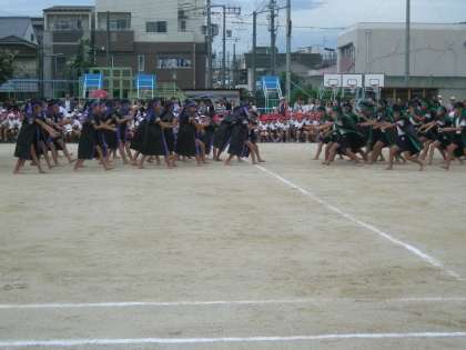 5年生の皆さんの「どっこいしょ どっこいしょ」、「ソーラン ソーラン」の掛け声が運動場いっぱいに響いていました。