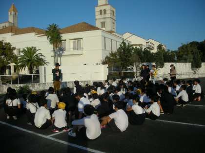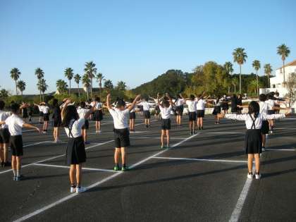 朝の集い・体操の様子です。さわやかな快晴です。