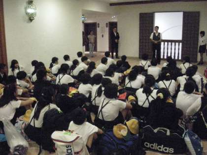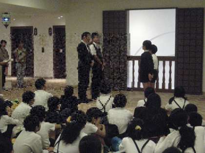 荷物整理、清掃後、退館式(学校長・児童代表あいさつ、宿舎の方からの話、連絡)を行いました。