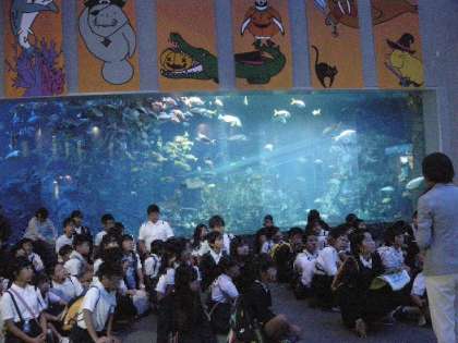 鳥羽水族館に到着後、館内見学(グループ活動)が始まりました。