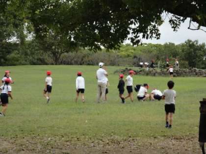 穏やかな秋空の中、3年生は大仙公園に遠足に行きました。青い芝生の中を「なにかそっちいったよ!!あっバッタや。」「こっちはこおろぎいてるで。」と自然を楽しんでいる姿と「次はこおり鬼!!せんせいもしよう!」と友だちや先生と遊んでいる姿をとてもうれしく思いました。