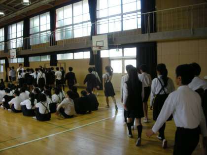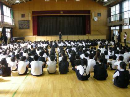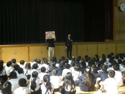 避難行動の後、平野警察署の方から、不審者に対する対応の仕方や登下校時の安全確保等についてのお話をしていただきました。