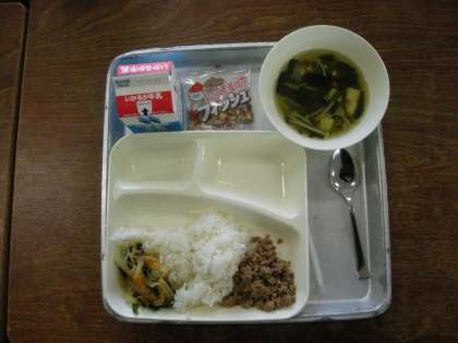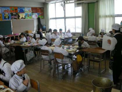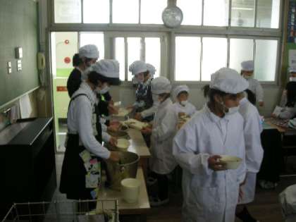 5・6年生が中心となって、配膳を行いました。「いただきます。」