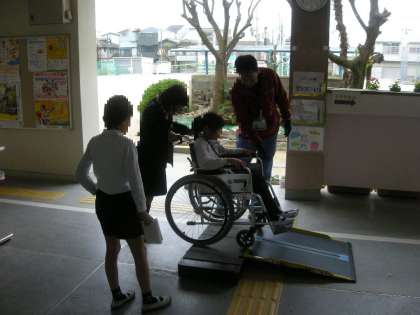 大阪市立心身障がい者リハビリテーションセンターの方々から、車いすの正しい使用方法・介助方法等をていねいに教えていただきました。ありがとうございました。