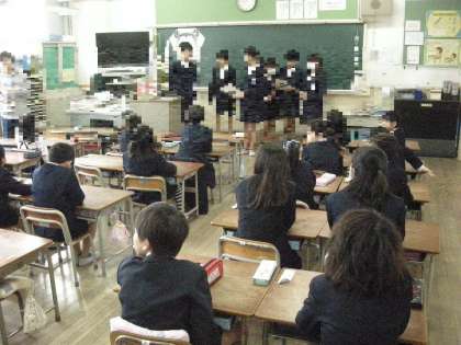 画像上:班長によるはじめの会