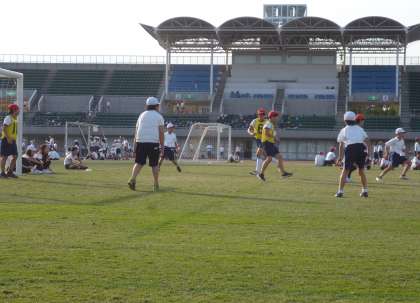 午後は、会場を第二陸上競技場に移してドッジボールやサッカーを通じて他校と交流しました。