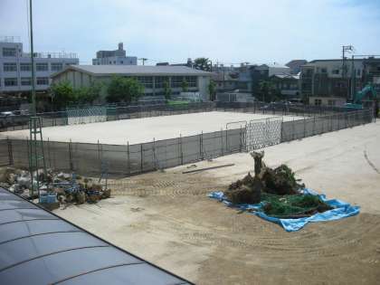 現在は、玄関前の池や遊具、鉄棒、砂場等の撤去を行っています。