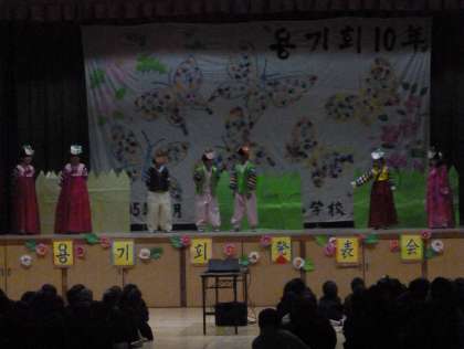5日(金)に、本校の民族クラブ「ヨンギフェ」の発表会を行いました。今年でちょうど20回目を迎える発表会です。「ヨンギフェ」に参加している子どもたちは、毎週金曜日の活動の時間に加えて、昼休みや放課後を活用して一生懸命練習してきました。