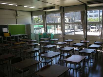 7月31日(金)に仮設校舎が完成し、8月11日(火)・12日(水)には、校長室、職員室、事務室、管理作業員室、4年1・2組、3・4年習熟度室の移動作業が完了しました。