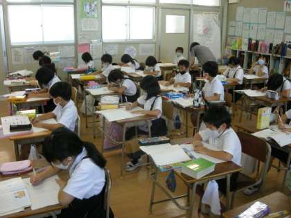 3年生の皆さんは、フェイスシールドをつけながら、グループで熱心に話合いをすることができていました。