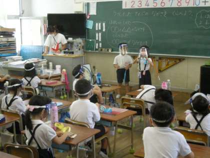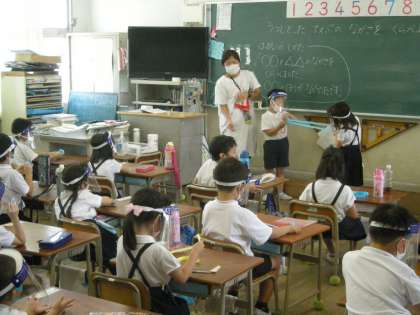 2人1組のペアになって、教室や廊下のいろいろなもの長さを紙テープを使って、測っていました。その後、測ったものの長さについて発表していました。それぞれが、しっかり発表することができていました。