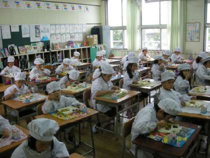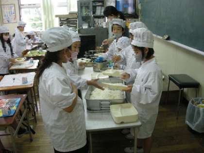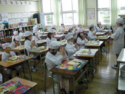2年生の皆さんは、みんなで協力して、上手に配膳し、おしゃべりをせずに、食べることができていました。
