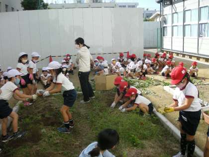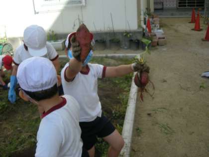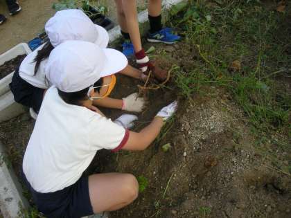 「こんな大きなおいもが、とれたよ!!」、2年生の皆さんの歓声が、学習園に響いていました。