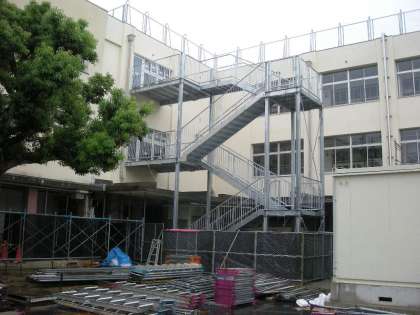 また、南校舎の仮設非常階段も完成しました。